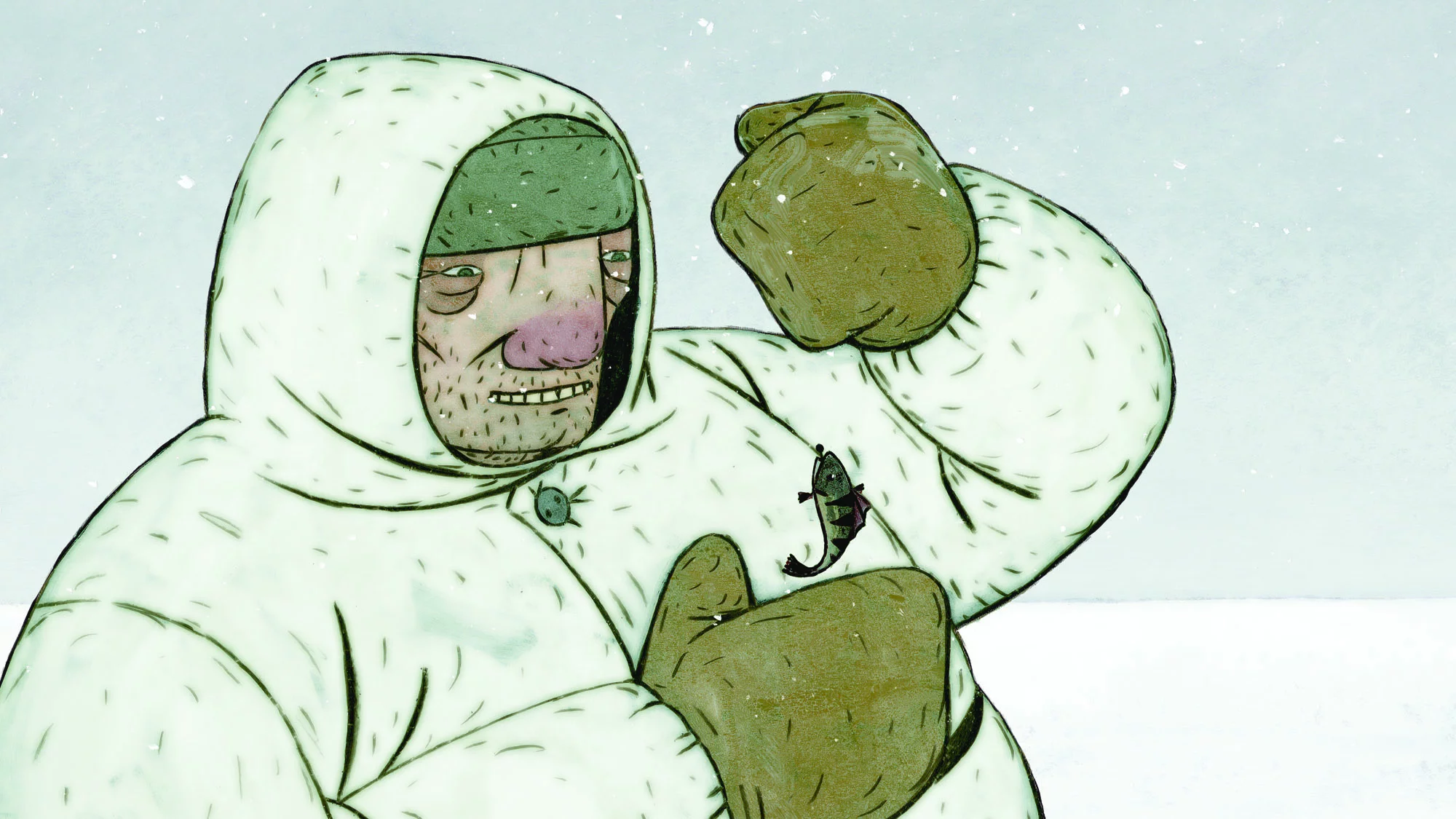 It is deep winter, and a man sits silently on the ice, fishing. His stubborn attempts are interrupted by flashes of consciousness, images of strange figures and the inexorable spring. And the man’s mind slowly begins to flow like the ice…