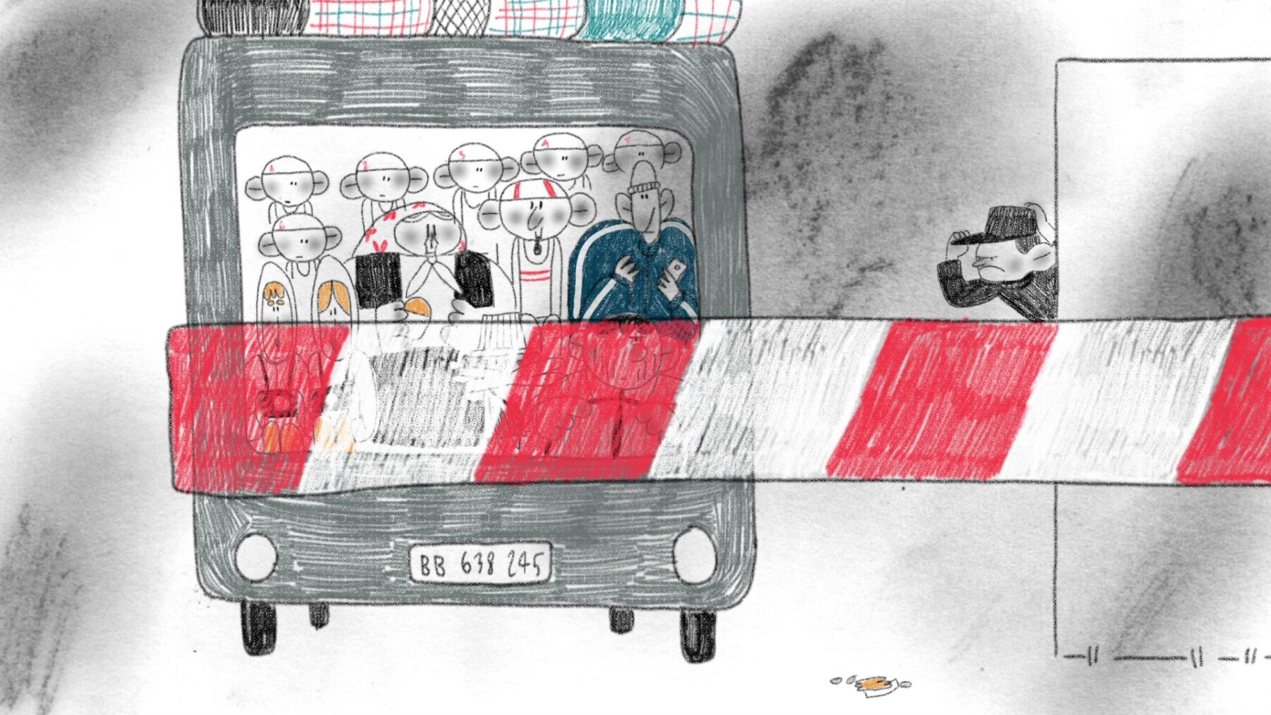 Bladākš, bladākš. Autobuss trauc maršrutā. Pasažieru rindās dvīņi knipsē skaistos skatus, tantuks cierējas ap sviestmaizi, bet kāds tēvainis jaunietiem atņem mobilo telefonu. Drīz autobusu aptur muitnieks, kurš nav apmierināts ar saņemto kukuli. Pasažieri apvienojas, lai turpinātu ceļu.