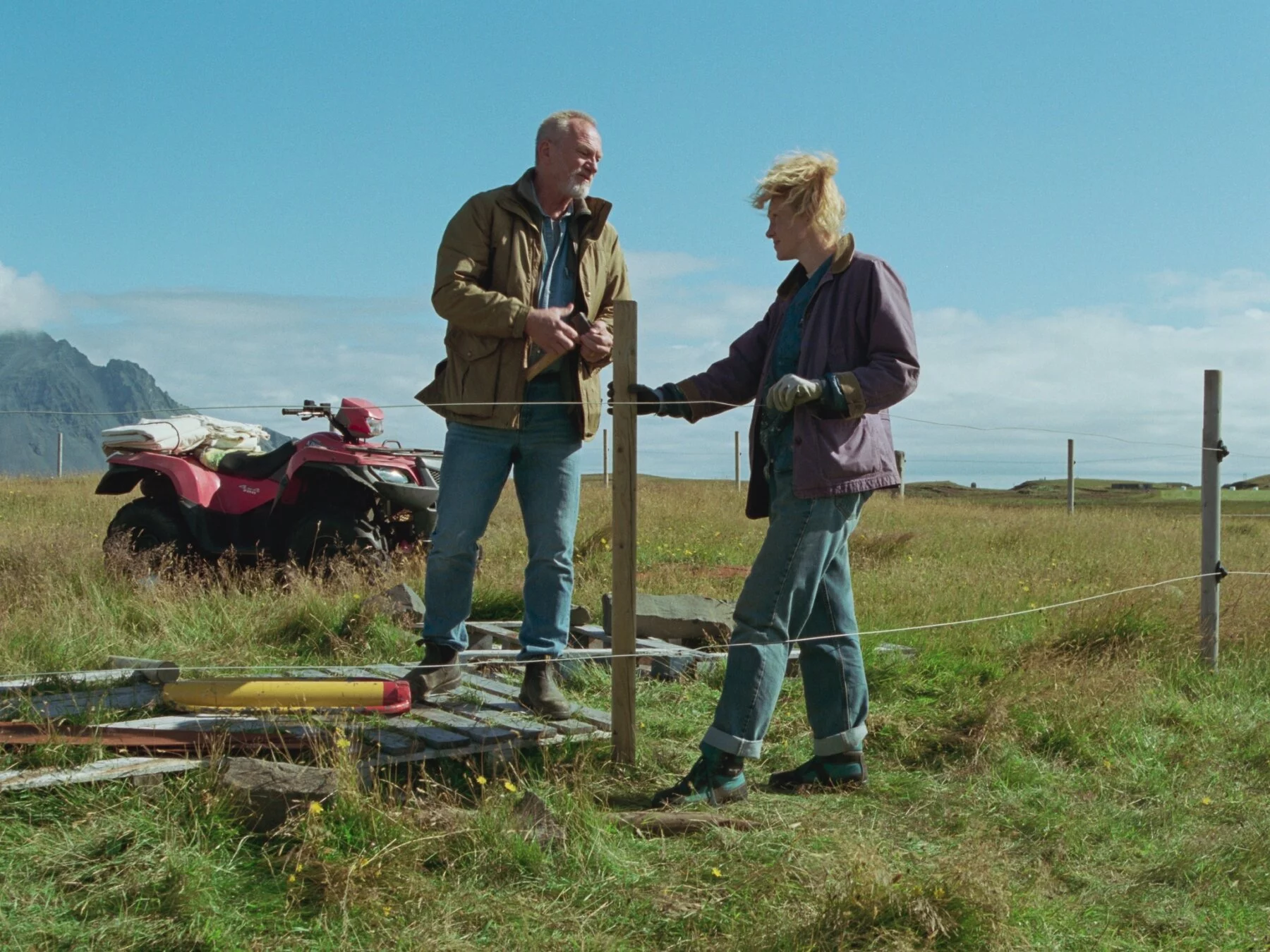 Islandiešu autors Paulmasons ir vizuālo metaforu bards – ja viņa filmā “Balta, balta diena” (2019) galvenais varonis remontēja māju un “Dievzemē” (2022) mācītājs cēla baznīcu, tad jaunākajā darbā, kas tika izrādīts Kannās, mēs redzam māju bez jumta. To viņš izmanto kā filmas prologa ainu. Šķietamajā uzstādījumā “laulības dzīves ainas” neatrast nekā pārzelēta – ziemeļnieciskais humors un absurds mijas ar dabas himnām, lieliskiem aktierdarbiem (lomās zināmie islandieši Sāga Gardarsdottira un Sverrirs Gudnasons) un stāstniecības atjautību. Filmai topot netālu no Paulmasona dzimtās pilsētiņas, tai ir daudz biogrāfisku elementu, kur arī Annas un Magnusa bērnu lomās redzami paša režisora atvases – Ida, Torgilss un Grimurs – un arī sunenīte Panda, kas saņēma “Palmas suņa” balvu.